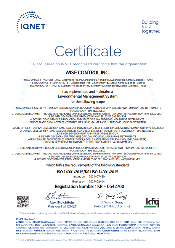 주식회사 와이즈는 각 산업현장의 압력, 온도, 유량을  측정 지시하는 각종 계측제어기 및 지시계를 개발, 생산 및 판매 그리고이에 대한 서비스를 수행하는 업체로서 환경경영의 관점에서 사업 경영을 환경친화적으로 실시할 것이며 "고객만족이 우리회사의 최고가치" 임을 인식하고 고객만족을 통하여 기업발전을 이루며 이를 실현하기 위해 환경영향을 최고경영자와 임직원 모두가 인식하고 지속적으로 실천하기 위한 환경방침을 다음과 같이 정한다.